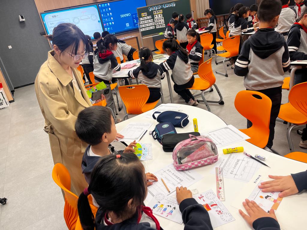 为推动课堂教学提质增效,帮助学生建立正确时间观念、掌握时间相关知识与规划方法,中数教研组以综合实践“一天的时间”为主题开展教学研讨。蒋一倩、孔彩云两位教师紧扣“大任务”设计与“问题支架”搭建,分别执教了《一天时间的表示》和《合理安排一天的时间》,全体数学教师参与观课研讨。