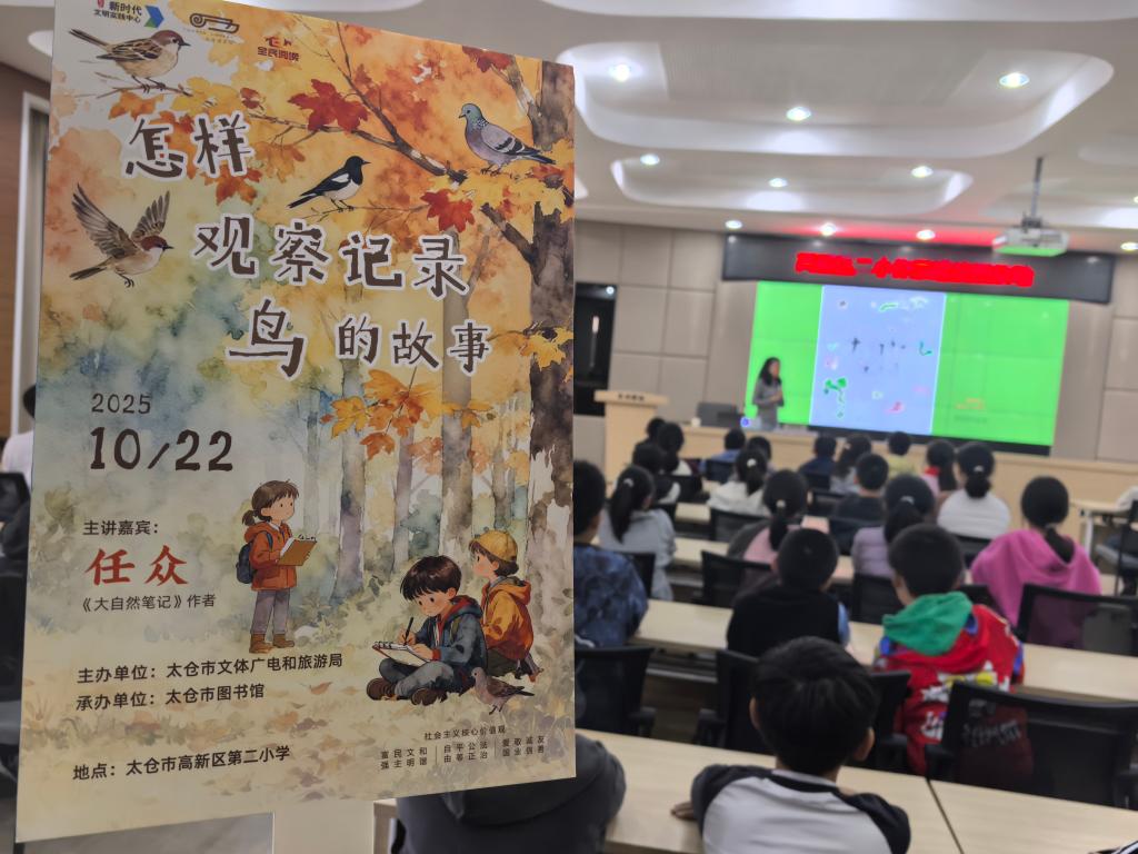 2025年10月22日下午,在太仓市图书馆的大力支持下,一场别开生面的自然观察讲座在高新区二小多功能厅热烈开展,主讲人为自然教育领域知名推广者、知名作家任众老师,众多同学们齐聚一堂,共同开启了这场奇妙的自然探索之旅。