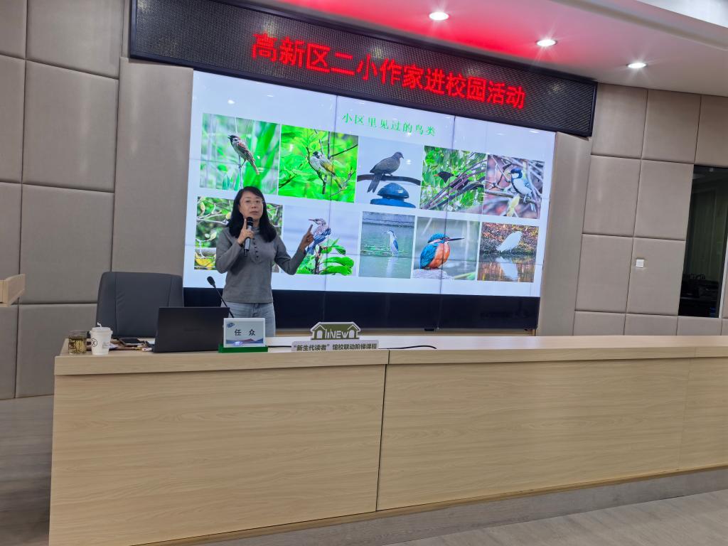 讲座中,任众老师围绕“怎样观察记录鸟的故事”这一主题,深入浅出地为同学们讲解。她分享了许多实用的观察技巧,比如如何通过鸟鸣声判断鸟类的种类,怎样根据鸟儿的羽毛特征识别不同品种 。同时,任众老师还强调了自然笔记的重要性,亲自示范如何用简单的文字和生动的绘画,记录下鸟儿的生活习性、活动轨迹等有趣细节,让同学们深刻领略到自然观察与记录的魅力。