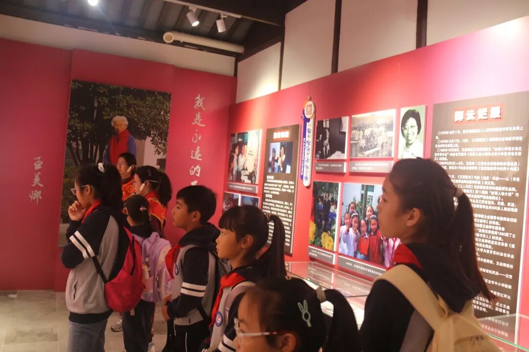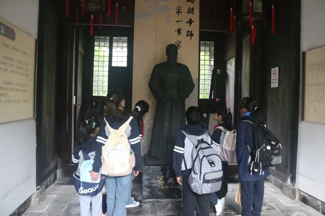 上午,访学团如约抵达石梅小学。一进校园,古朴典雅的校园景致便吸引了孩子们的目光。在石梅小学老师与三位小讲解员的热情引导下,大家参观“石梅十八景”,聆听景观背后的故事;走进校史馆,从老照片、旧物件中触摸学校的历史脉络;驻足丹井旁,探寻古井承载的文化记忆。秋风拂过,校园内银杏叶簌簌飘落,孩子们小心翼翼拾起金黄的叶片与饱满的银杏果,将这份独特的校园印记收作纪念。