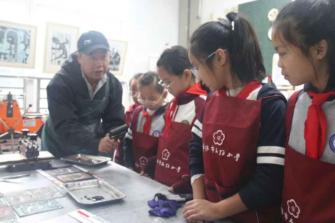 随后,访学团走进石梅小学版画社团,在陆老师的专业指导下,开启版画创作体验。从学习印刷技巧到亲手制作藏书票与版画扇子,孩子们专注投入,在指尖的操作中感受版画艺术的肌理之美与创作乐趣,沉浸式领略传统文化技艺的独特魅力。