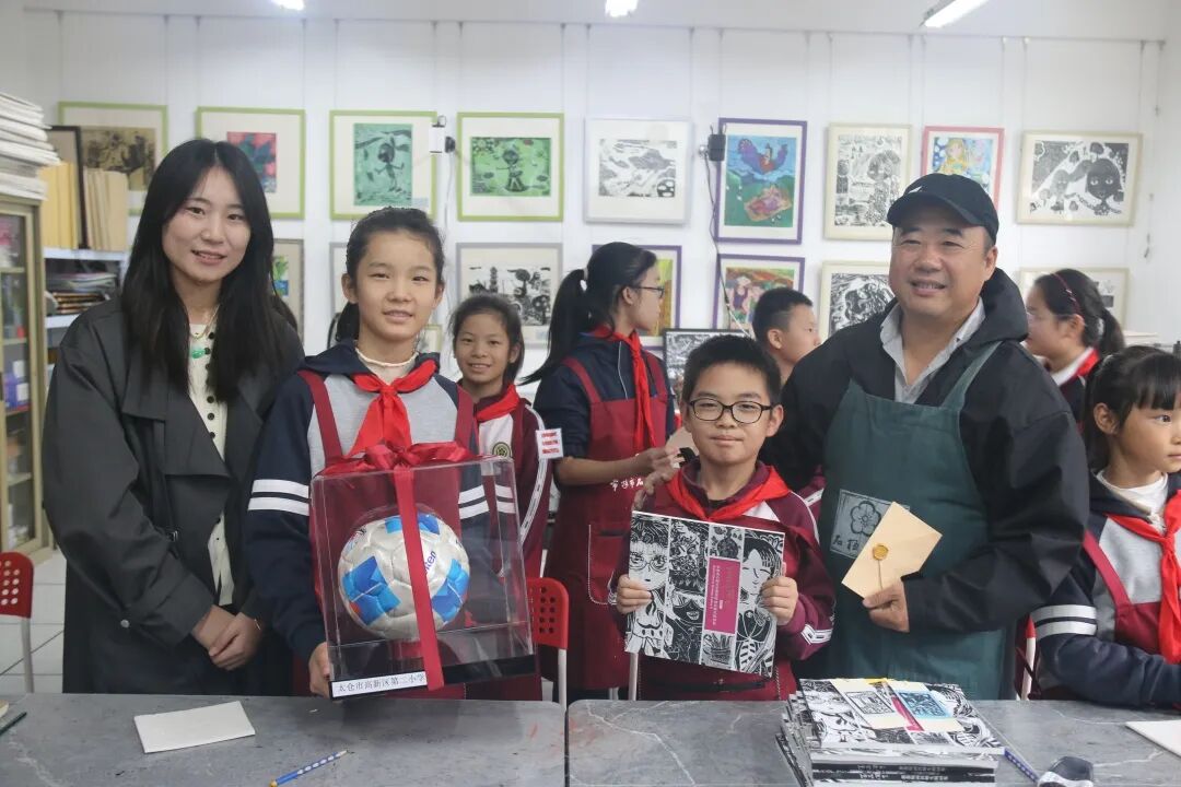 活动尾声,访学团代表学校,将象征友谊与活力的足球赠予石梅小学;石梅小学也回赠了精致的版画书册,以文化为媒,让两校情谊在互赠礼物中愈发深厚。